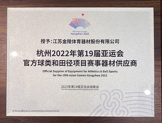 杭州2022年第19屆亞運會倒計時一周年之際,杭州2022年第19屆亞運會官方供應商授牌儀式在杭州隆重舉行,經大賽組委會綜合審定,正式授予金陵體育“杭州2022年第19屆亞運會官方球類和田徑項目賽事器材供應商”的榮譽,這標志著金陵體育正式成為了杭州亞運會、亞殘運會的官方球類和田徑項目賽事器材供應商。